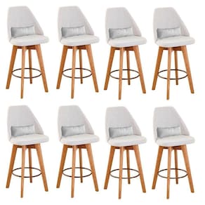 Kit 08 Banquetas Alta Maya Giratória Com Encosto Gourmet Linho Bege E Almofada Sintético Branco - Gat Magazine Banqueta Maya Giratória - GAT MAGAZINE A Banqueta Maya possui assento e pés em madeira eucalipto com sistema giratório! Os pés contam com um reforço que proporciona um suporte de peso de até 120 Kgs.O assento é revestido com espuma D-23. Além de bonita e charmosa, vai trazer para seu ambiente elegância e proporcionará conforto para sua família e amigos nos momentos de lazer.