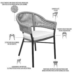 O Kit 08 Cadeiras Decorativas Para Área Gourmet Base Grafite Corda Náutica Medan Chumbo - Lyam Decor é a peça ideal para decorar e dispor de conforto e comodidade nos momentos de lazer. O destaque aqui vai para o design artesanal com materiais de altíssima qualidade, como a corda náutica que é um material extremamente elegante na fabricação de móveis para área externa, pela sua beleza, resistência e durabilidade, ou seja, sem erro para criar desde uma decoração simples até uma mais ousada e cheia de personalizações. Pode ser usada perto da piscina, no jardim, sala de estar, varanda e onde mais sua criatividade desejar! Garanta já a sua!