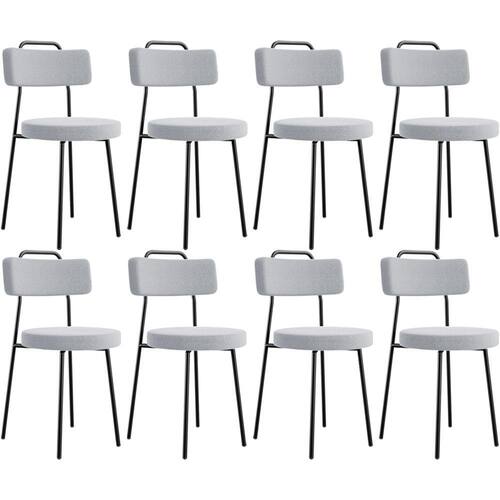 Amplamente moderna, dispondo de muito realce e design singular, o Kit 08 Cadeiras Decorativas Estofadas Para Sala De Jantar Barcelona L02 Bouclê Cinza - Lyam Decor vem com a personalidade e elegância que sua decoração merece! Estruturada em aço carbono, contrasta lindamente com o encosto e assento estofados, cabe mencionar ainda seu revestimento em Couríssimo, é confeccionada por materiais de excelente qualidade, extremamente resistentes e aconchegantes.