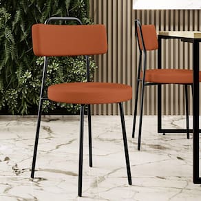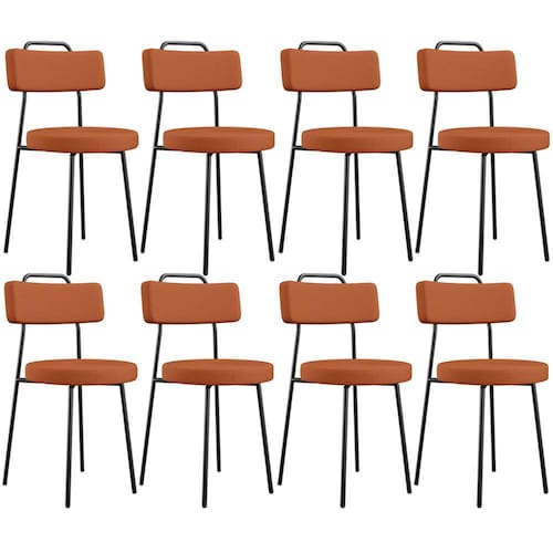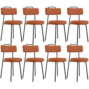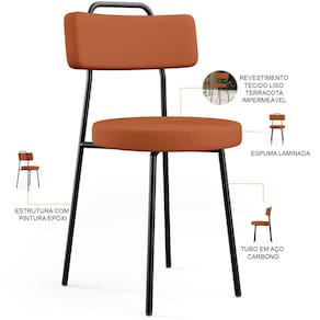 Amplamente moderna, dispondo de muito realce e design singular, o Kit 08 Cadeiras Decorativas Estofada Para Sala De Jantar Barcelona L02 Tecido Terracota - Lyam Decor vem com a personalidade e elegância que sua decoração merece! Estruturada em aço carbono, contrasta lindamente com o encosto e assento estofados, cabe mencionar ainda seu revestimento em Couríssimo, é confeccionada por materiais de excelente qualidade, extremamente resistentes e aconchegantes.
