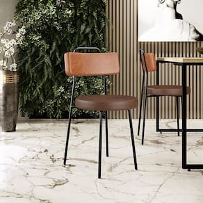 Amplamente moderna, dispondo de muito realce e design singular, o Kit 08 Cadeiras Decorativas Estofada Para Sala Jantar Barcelona L02 Couríssimo Camel Marrom - Lyam vem com a personalidade e elegância que sua decoração merece! Estruturada em aço carbono, contrasta lindamente com o encosto e assento estofados, cabe mencionar ainda seu revestimento em Couríssimo e linho, é confeccionada por materiais de excelente qualidade, extremamente resistentes e aconchegantes.