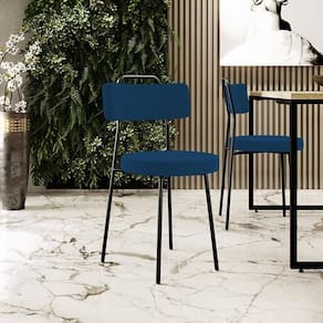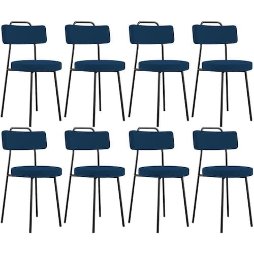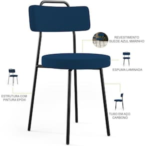 Amplamente moderna, dispondo de muito realce e design singular, o Kit 08 Cadeiras Decorativas Estofadas Para Sala De Jantar Barcelona L02 Suede Azul Marinho - Lyam Decor vem com a personalidade e elegância que sua decoração merece! Estruturada em aço carbono, contrasta lindamente com o encosto e assento estofados, cabe mencionar ainda seu revestimento em Couríssimo, é confeccionada por materiais de excelente qualidade, extremamente resistentes e aconchegantes.
