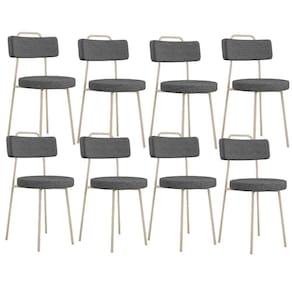 Kit 08 Cadeiras Decorativas Estofada Sala Jantar Barcelona Arena L02 Linho Cinza Escuro - Lyam