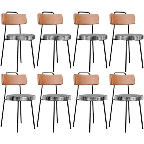 Amplamente moderna, dispondo de muito realce e design singular, o Kit 08 Cadeiras Decorativas Estofada Para Sala Jantar Barcelona L02 Couríssimo Camel Veludo Pied Poule - Lyam vem com a personalidade e elegância que sua decoração merece! Estruturada em aço carbono, contrasta lindamente com o encosto e assento estofados, cabe mencionar ainda seu revestimento em Couríssimo e linho, é confeccionada por materiais de excelente qualidade, extremamente resistentes e aconchegantes.