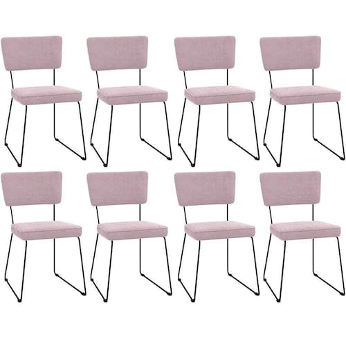 O espetáculo que é o Kit 08 Cadeiras Decorativas Estofada Base De Aço Allana L02 Bouclê Rosê - Lyam Decor vem para agregar ainda mais valor na decoração da sua casa. Sua estrutura em aço remete-nos ao estilo industrial que surgiu em Nova York no século XX, já o assento e encosto estofados trazem equilíbrio e conforto criando a combinação perfeita para o ambiente. Cabe mencionar também o revestimento em bouclê que possui textura incrível e acabamento impecável.