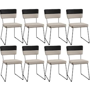 O espetáculo que é o Kit 08 Cadeiras Decorativas Estofada Allana L02 Faixa Corano Preto Linho Bege - Lyam Decor vem para agregar ainda mais valor na decoração da sua casa. Sua estrutura em aço remete-nos ao estilo industrial que surgiu em Nova York no século XX, já o assento e encosto estofados trazem equilíbrio e conforto criando a combinação perfeita para o ambiente.