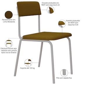 Cor do estofamento: Mostarda | Model: Sense | ColorSimple: Mostarda | ColorFamily: Mostarda | SizeDescription: Altura: 243 cm x Largura: 47,5 cm x Profundidade: 50,5 cm | ProductContents: 08 Cadeiras | Largura do assento: 47,5 cm | Cor da estrutura da cadeira: Branco | É empilhável: Não | Firmeza: Firme | Material: Estrutura em Aço, MDP, Revestimento em Linho e espuma | OriginState: PR | ProductWarranty: 90 dias após o do produto | Desenho do tecido: Liso | Profundidade do assento: 40 cm | Peso máximo suportado: 120 kg | Tempo de montagem: na | MaterialFamily: Aço, MDP, Linho e espuma | ProductHeight: 243 cm | OriginCountry: | Profundidade da cadeira: 50,5 cm | ProductWeight: 43,2 Kg | Altura do assento a partir do solo: 47,5 cm | Color: Mostarda | Cor: Mostarda | SupplierSimpleName: Kit 08 Cadeiras Estofada Para Sala de Jantar Sense Branco C01 Linho Mostarda - Lyam Decor | ProductLength: 50,5 cm | É cadeira de balanço: Não | Altura da cadeira: 81 cm | Requer montagem: Não | Largura da cadeira: 47,5 cm | ColorSupplier: Mostarda | Fabricante: Lyam Decor | ProductInstructions: Produto para uso em ambiente interno, nao devendo ficar exposto ao sol, calor e umidade excessivos. | ProductWidth: 47,5 cm | Cor do assento: Mostarda | Material do estofamento: Espuma D-22 e D-59 | É dobrável: Não | Espessura do assento: na