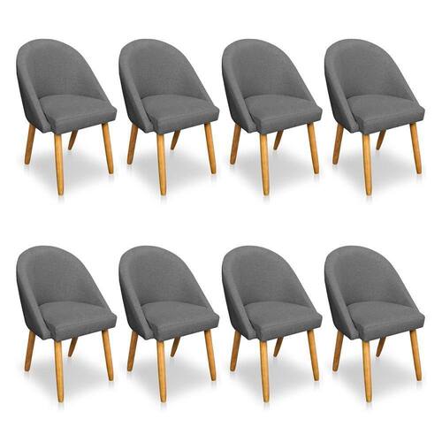 Kit 08 Cadeiras Jantar Bela Linho Grafite Pés Palito Castanho - Pallazio - Cinza