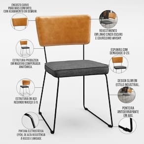 O espetáculo que é o Kit 08 Cadeiras Decorativas Sala Jantar Allana L02 Couríssimo Whisky Linho Cinza Escuro - Lyam Decor vem para agregar ainda mais valor na decoração da sua casa. Sua estrutura em aço remete-nos ao estilo industrial que surgiu em Nova York no século XX, já o assento e encosto estofados trazem equilíbrio e conforto criando a combinação perfeita para o ambiente.