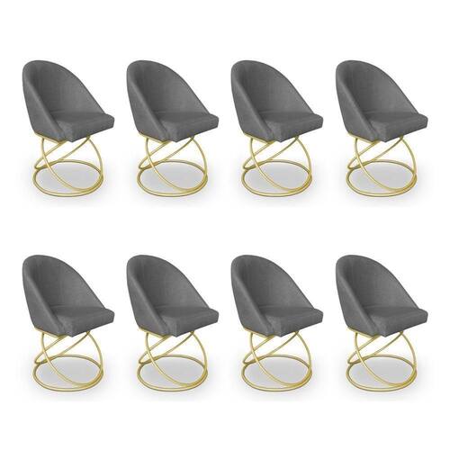 Kit 08 Cadeiras Poltrona De Jantar Bela Linho Grafite Base Metálica Luxo Dourado - Pallazio