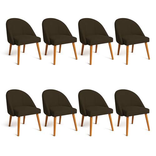 Kit 08 Cadeiras Poltrona de Jantar Luna Suede Pés Palito Castanho - Pallazio - Marrom