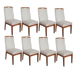 Conjunto 08 Cadeiras Para Sala De Jantar Ricco Estofada Madeira Carvalho Veludo Bege Claro - Ahazzo Móveis Cor Bege