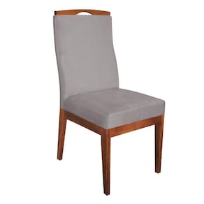 Conjunto 08 Cadeiras Para Sala De Jantar Ricco Estofada Madeira Carvalho Veludo Cinza Claro - Ahazzo Móveis Cor Cinza