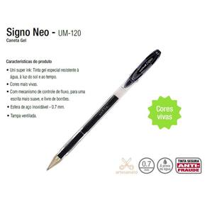A Caneta Gel Uniball Signo Neo tem tinta gel especial que é resistente à água, à luz do sol e ao tempo. Perfeita para você usar sempre em todos os materiais!