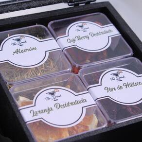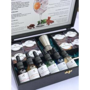 Kit 08 Especiarias Gin + 6 Xaropes + Dosador Duplo + Colher Kit para preparo de Drink com 08 especiarias + Dosador Duplo + Colher + 6 xaropesAcompanha o Kit:01 Estojo Luxo em Madeira (MDF) exclusiva, medidas 30 X 20 X 06 cm;01 Colher exclusiva01 Dosador Duplo em Inox 40ml/20mlSugestão de preparo 08 Especiarias, em caixa de acrílicoAnis Estrelado 20gCanela 20gGoji Berry 20gAlecrim 20gPimenta Rosa 20gFlor de Hibisco 15gLaranja Desidratada 15gMaçã Desidratada 20g 6 xarope em embalagem conta gota 1 frasco de Xarope de Curaçau - 30ml 1 frasco de Xarope de Maracujá - 30ml 1 frasco de Xarope de Maça Verde - 30ml 1 frasco de Xarope de Morango - 30ml 1 frasco de Xarope de Amora - 30ml 1 frasco de Xarope de Limao Siciliano - 30mlOBS: Um frasco de xarope prepara aproximadamente 10 drinks. Validade 1 ano Marca: The Drink