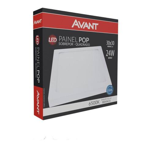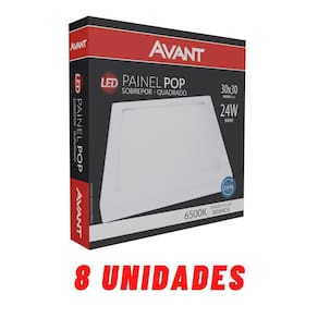 Kit 08 Plafon Sobrepor Quadrado Led 24w Painel Bivolt 30x30 Avant O Painel Modular Sobrepor é indicado para ambientes com forro modular e também para forros convencionais. Utilização Ideal como Sobrepor. Kit 8 unidades de Plafon Sobrepor 24w Material: Corpo em alumínio e difusor em policarbonato. Possui transformador eletrônico isolado. Categoria de instalação: Sobrepor Tensão nominal: 100V a 240V. Fator de potência: 0,50. Baixo consumo de energia Índice de Proteção: IP 20 Tensão: Bivolt Automático 100V - 240V Ngulo de Abertura: 120º Potência: 24 W Eficiência Luminosa: 70 Lumens / W Temperatura de Cor: 6500 K Emissão de Cor: Branco Frio Dimensões: 300 x 300 x 30 mm Vida útil nominal de até 25 mil horas