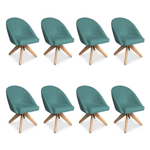 Kit 08 Poltronas Cadeira Giratória Bela Suede Base De Madeira - Pallazio Azul Turquesa