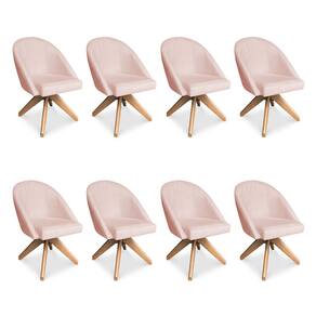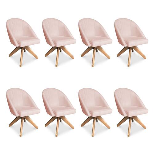 Kit 08 Poltronas Cadeira Giratória Bela Suede Base de Madeira - Pallazio - Rosa
