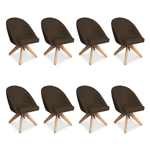 Kit 08 Poltronas Cadeira Giratória Bela Suede Base de Madeira - Pallazio - Marrom