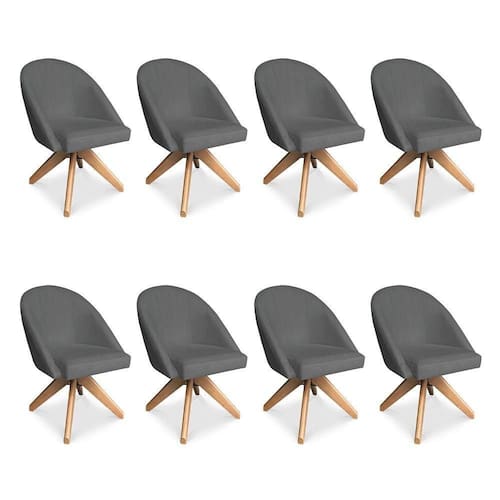 Kit 08 Poltronas Cadeira Giratória Bela Suede Grafite Base De Madeira - Pallazio - Cinza