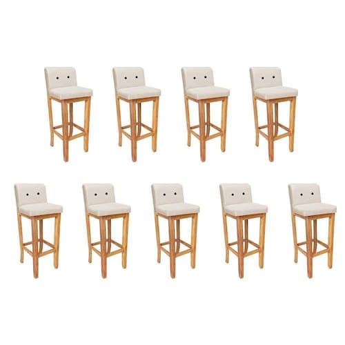 Kit 09 Banqueta Alta Com Encosto Aila Balcão Bistrô Base Madeira Maciça Sintético Bege Botão Preto - Ahazzo Móveis BANQUETA AILA - Ahazzo Móveis Que tal dar um toque de beleza e conforto ao seu ambiente? Ideal para agregar elegância e sofisticação ao seu ambiente de forma prática e eficaz.
