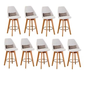 Kit 09 Banquetas Alta Maya Giratória Com Encosto Gourmet Linho Bege e Almofada Corino Bege - Aurora Line - Blush