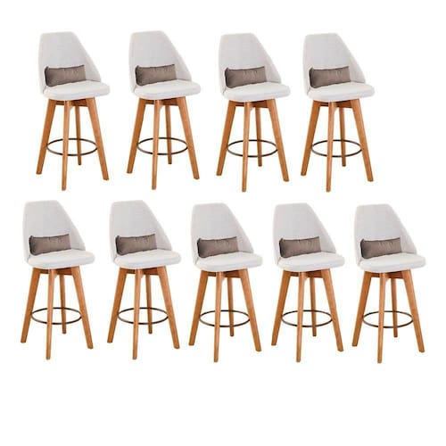 Kit 09 Banquetas Alta Maya Giratória Com Encosto Gourmet Linho Bege E Almofada Sintético Bege - Aurora Line