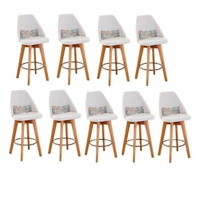 Kit 09 Banquetas Alta Maya Giratória Com Encosto Gourmet Linho Bege E Almofada Folhas - Gat Magazine Banqueta Maya Giratória - GAT MAGAZINE A Banqueta Maya possui assento e pés em madeira eucalipto com sistema giratório! Os pés contam com um reforço que proporciona um suporte de peso de até 120 Kgs.O assento é revestido com espuma D-23. Além de bonita e charmosa, vai trazer para seu ambiente elegância e proporcionará conforto para sua família e amigos nos momentos de lazer.