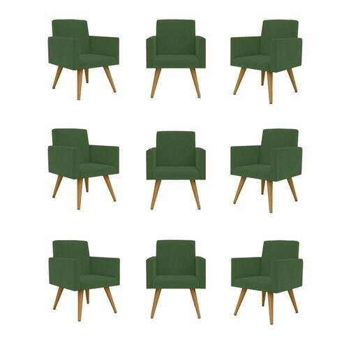 Kit 09 Cadeiras Poltronas Decorativa - Escritório - Recepção Cor:verde