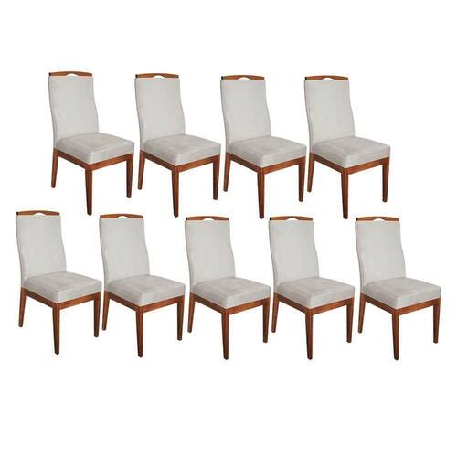 Conjunto 09 Cadeiras Para Sala De Jantar Ricco Estofada Madeira Castanho Veludo Bege Claro - Ahazzo Móveis Cor Bege