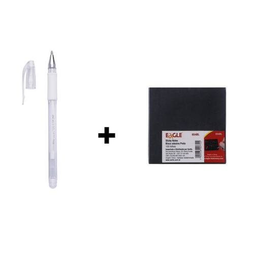 01-Caneta em Gel Grip Branca 08.mm - Molin 01-Bloco Adesivo Preto 75x75mm - Eagle