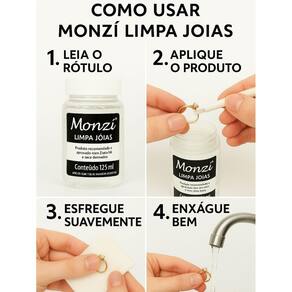 Kit 1 limpa jóias ouro puro 18k monzi 125ml grande + 1 flanela pano mágica polimento realça brilho Descrição do produto: O limpa joias monzi é um produto específico para limpar ouro e fácil de usar. Atenção para o modo de usar Modo de usar: - passe o limpa chapeados monzi na semijóias banhada folheada ou cobre utilizando algodão. - enxágue em água corrente e enxugue bem com uma flanela mágica. Descarte o algodão. - para objetos maiores, utilize um recipiente de vidro ou plástico com imersão da peça por 10 segundos apenas. - lave bem o recipiente utilizado. - descarte o produto em água corrente. - não risca e nem desgasta a prataria. - limpa jóias monzi retira a oxidação e a gordura, deixando ainda, uma camada de proteção no objeto. Marca: Não Informado Ean: 7732647222073
