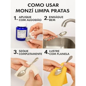 Kit 1 limpa pratas 925 monzi 125ml grande + 1 flanela pano mágica polimento realça brilho jóias Descrição do produto: O limpa prata monzi + flanela é um produto específico para limpar joias de prata e fácil de usar. Atenção para o modo de usar Modo de usar: - passe o limpa pratas monzi no objeto de prata ou cobre utilizando algodão. - enxágue em água corrente e enxugue bem com uma flanela mágica. Descarte o algodão. - para objetos maiores, utilize um recipiente de vidro ou plástico com imersão da peça por 10 segundos apenas. - lave bem o recipiente utilizado. - descarte o produto em água corrente. - não risca e nem desgasta a prataria. - limpa pratas monzi retira a oxidação e a gordura, deixando ainda, uma camada de proteção no objeto. Itens inclusos: 1 x limpa prata monzi 35ml + 1x super flanela mágica Marca: Não Informado