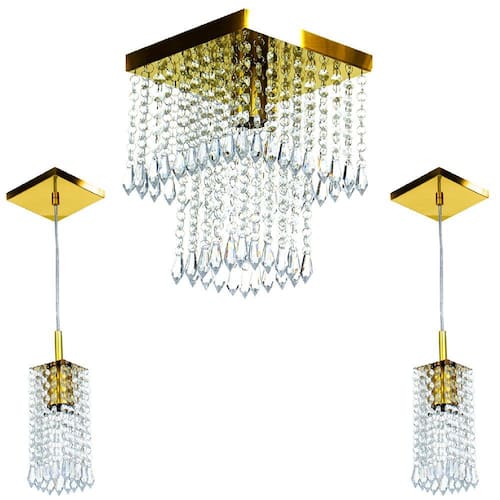 Kit 1 Lustre Marrycrillic + 2 Pendentes Clearcrilic Gold