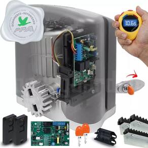 CARACTERÍSTICAS DO MOTOR • Potência de 0,5 ou 1/2 HP (portões até 700kg balanceado) • Motor: Monofásico 60Hz • Consumo (A): 2,86A - 127V / 2,15A - 220V • Peso do portão: 700Kg • Redução: 1:23 • Abre portão de 3m em 10,6 seg. • Suporta até 60 aberturas por hora (ciclos/hora) • Rotação do motor 1740 RPM • Capacitor: 127V - 35µF / 220V - 12µF • Fim de curso Analógico (Reed Switch) • Engrenagem externa 18 dentes em alumínio • Coroa interna de Nylon com alma metálica
