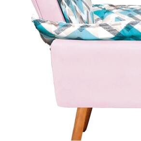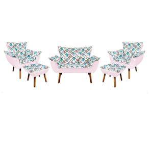 Kit 01 Namoradeira com 02 Poltronas e 02 Puffs Opala Composê Suede com Estampado Traçado Azul D33 Pés Palito Castanho