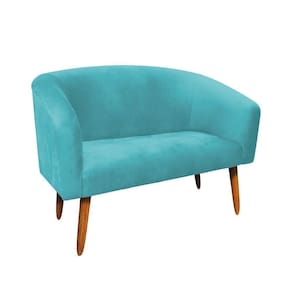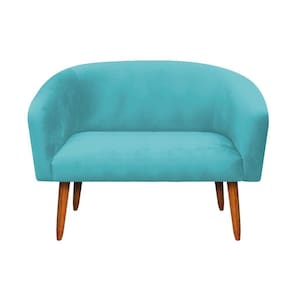Kit 01 Namoradeira 02 Lugares e 01 Poltrona Giratória Stella Suede Azul Turquesa Base Cromada - D'Rossi