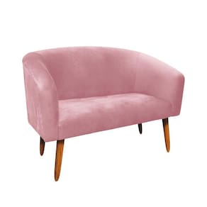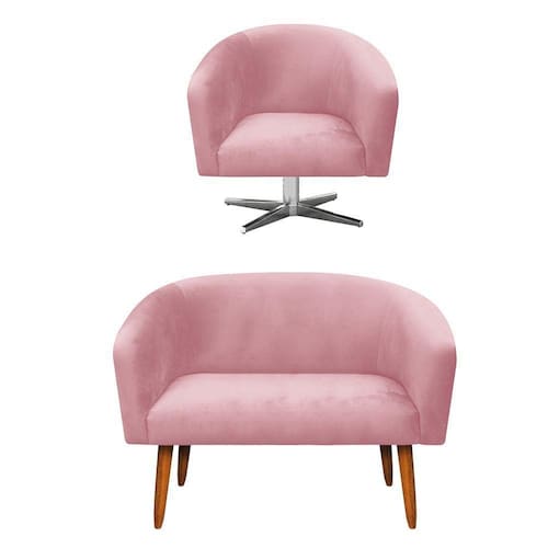 Kit 01 Namoradeira 02 Lugares e 01 Poltrona Giratória Stella Suede Rosê Base Cromada - D'Rossi