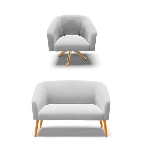 A Namoradeira Stella além de linda vem com um design moderno. Ideal para comportar duas pessoas. Projetada para fornecer segurança, bem-estar e aconchego para quem se assentar. Com um acabamento rico em detalhes, o tecido em Suede no tom cinza, no seu encosto e no assento é composta por espuma mais densa D-23. Os pés são em palito de madeira castanho, tornando o móvel ainda mais resistente. Ela combina com qualquer decoração. Fala aí se não é uma ótima oportunidade!! Escolha seu kit 01 Namoradeira 02 lugares e 01 Poltrona com base giratória de madeira e crie uma decoração romântica, perfeita para casais apaixonados desfrutarem um tempo juntos.
