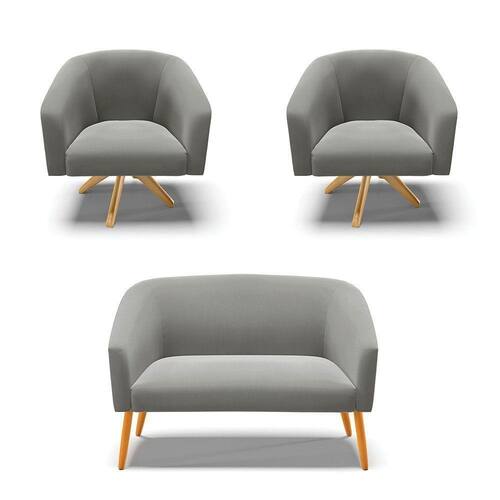A Namoradeira Stella além de linda vem com um design moderno. Ideal para comportar duas pessoas. Projetada para fornecer segurança, bem-estar e aconchego para quem se assentar. Com um acabamento rico em detalhes, o tecido em Suede, no seu encosto e no assento é composta por espuma mais densa D-23. Os pés são em palito de madeira castanho, tornando o móvel ainda mais resistente. Ela combina com qualquer decoração. Fala aí se não é uma ótima oportunidade!! Escolha seu kit 01 Namoradeira 02 lugares e 02 Poltronas com base giratória de madeira e crie uma decoração romântica, perfeita para casais apaixonados desfrutarem um tempo juntos.