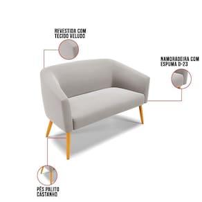 A Namoradeira Stella além de linda vem com um design moderno. Ideal para comportar duas pessoas. Projetada para fornecer segurança, bem-estar e aconchego para quem se assentar. Com um acabamento rico em detalhes, o tecido em Veludo no tom Cinza, no seu encosto e no assento é composta por espuma mais densa D-23. Os pés são em palito de madeira castanho, tornando o móvel ainda mais resistente. Ela combina com qualquer decoração. Fala aí se não é uma ótima oportunidade!! Escolha seu kit 01 Namoradeira 02 lugares e 02 Poltronas com base giratória de madeira e crie uma decoração romântica, perfeita para casais apaixonados desfrutarem um tempo juntos.