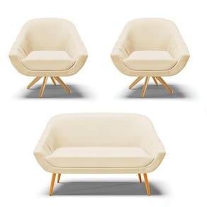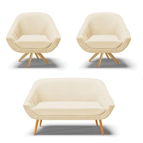 A poltrona Giratória Giovana é uma peça indispensável para momentos de descanso depois de um dia longo de trabalho. E não há nada melhor que poder relaxar em um móvel de extremo conforto não é mesmo! Afinal ela dará aquele toque de perfeição ao seu ambiente. Ela conta com uma estrutura reforçada em madeira eucalipto que oferece alta resistência e qualidade ao móvel. Produzida com Base Giratória de madeira que suporta até 120kg, seu estofamento é com espuma de densidade D-23. A namoradeira 02 Lugares traz consigo um toque de delicadeza por conta do formato arredondado de seu encosto, garantindo além de muito conforto uma personalidade única para seu ambiente. Produzida em madeira reflorestada de eucalipto, estofada em Espuma D-23, os pés são em madeira garantindo uma maior resistência ao produto. Sua durabilidade e conforto é seu diferencial. Adquira já seu Kit 01 Namoradeira 02 Lugares e 02 Poltronas Giratória de madeira no tecido Veludo no tom Off White A129 Luxo.