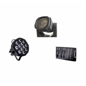 Especificações - características: moving beam led 4x25w - potência do led: 25w cree - quantidade de leds: 4 led's brancos - potencia total: 100w real - tensão: 110-220v, 50-60hz - consumo: 130w - canais: 11ch/17ch - pan horizontal : 540 graus - tilt vertical :250 graus - disco de cor: 3 cores rgb + branco - strobo: 1 - 25hz com dois tipos de efeitos - dimer: 0 - 100% - modo de controle: som, automático, master/slave e dmx. - dimensão do aparelho: 460 x 340 x 300mm - peso do aparelho: 8kg Mesa de iluminação onelight dmx 512 Mesa dmx para controlar equipamentos de iluminção com capacidade de armazenar 240 cenas e com ela é possível controlar até 12 aparelhos sendo que para cada aparelho até 16 canais. Compatível com diversos equipamentos. Informações técnicas: 192 canais dmx controla até 12 aparelhos com 16 canais cada simultaneamente Memória para 30 programas com 8 cenas cada 240 cenas no total Controla aparelhos com até 16 canais dmx É possível gravar 8 cenas diferentes na configuração Função blackout Funciona em 110 e 220v Cor: preta Embalagem: 1 x mesa dmx 512 1 x fonte de alimentação bivolt Peso e dimensão: - dimensão: 48 x 13 x 7 - peso: 2,5 kg