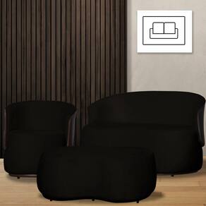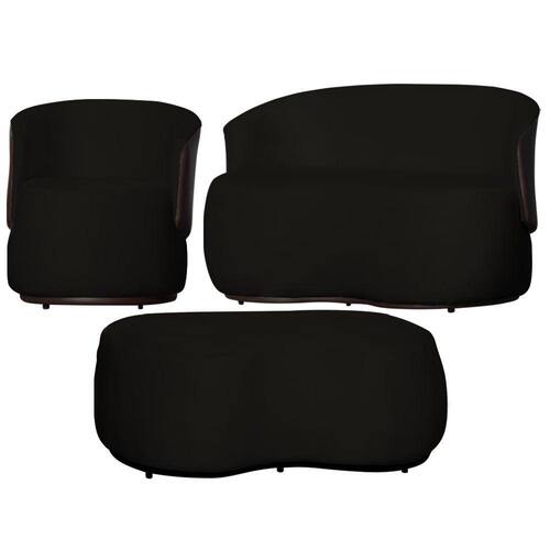 Kit 1 Poltrona 1 Namoradeira e 1 Puff Grande Design Orgânico Beatriz Veludo Composê Corino Marrom - Estopar - Preto