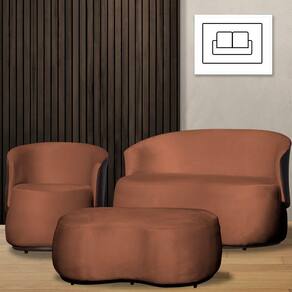 Kit 1 Poltrona 1 Namoradeira e 1 Puff Grande Design Orgânico Beatriz Veludo Composê Corino Marrom - Estopar - Laranja