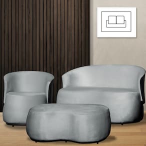 Kit 1 Poltrona 1 Namoradeira e 1 Puff Grande Orgânico Beatriz Veludo Composê Corino Preto - Estopar - Prata