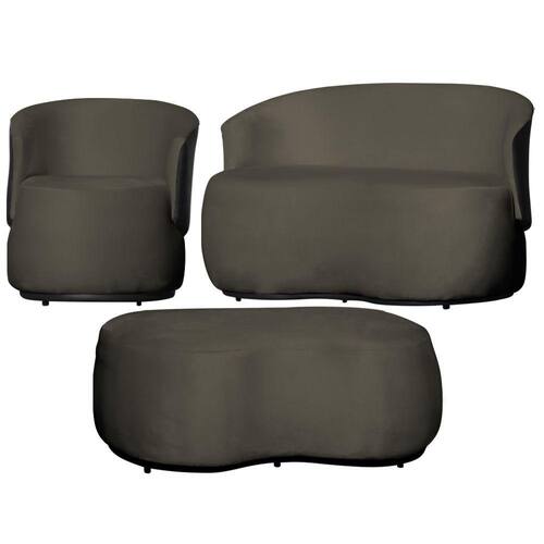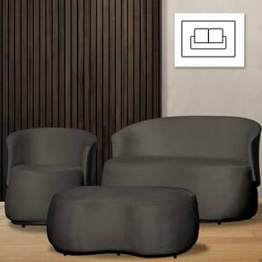 Kit 1 Poltrona 1 Namoradeira e 1 Puff Grande Orgânico Beatriz Veludo Composê Corino Preto - Estopar - Grafite