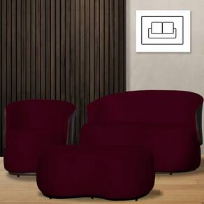 Kit 1 Poltrona 1 Namoradeira e 1 Puff Grande Suede Estilo Orgânico Beatriz Composê Corino Marrom - Estopar - Bordô