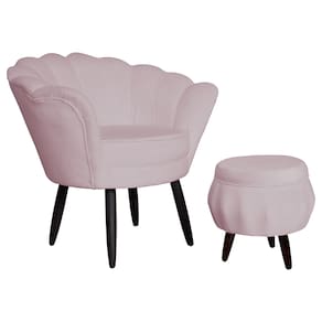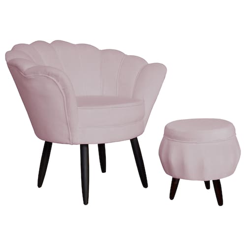Kit 1 Poltrona Com 1 Puff Pés Palito Salão de Beleza Pétala Suede Rose - LM DECOR - Rosê