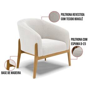 Kit 1 Poltrona E 1 Puff Stella Bouclê Base Madeira Castanho - D`rossi Cor Off White - Branco